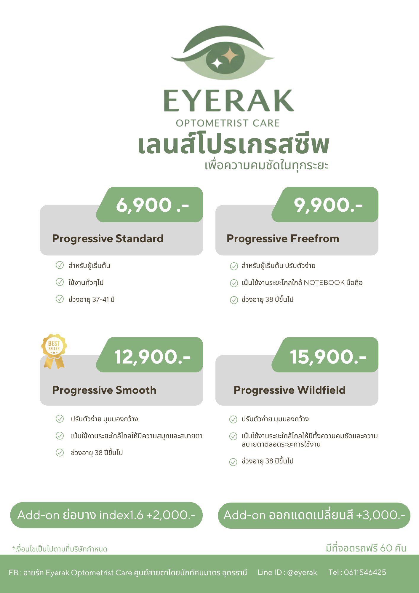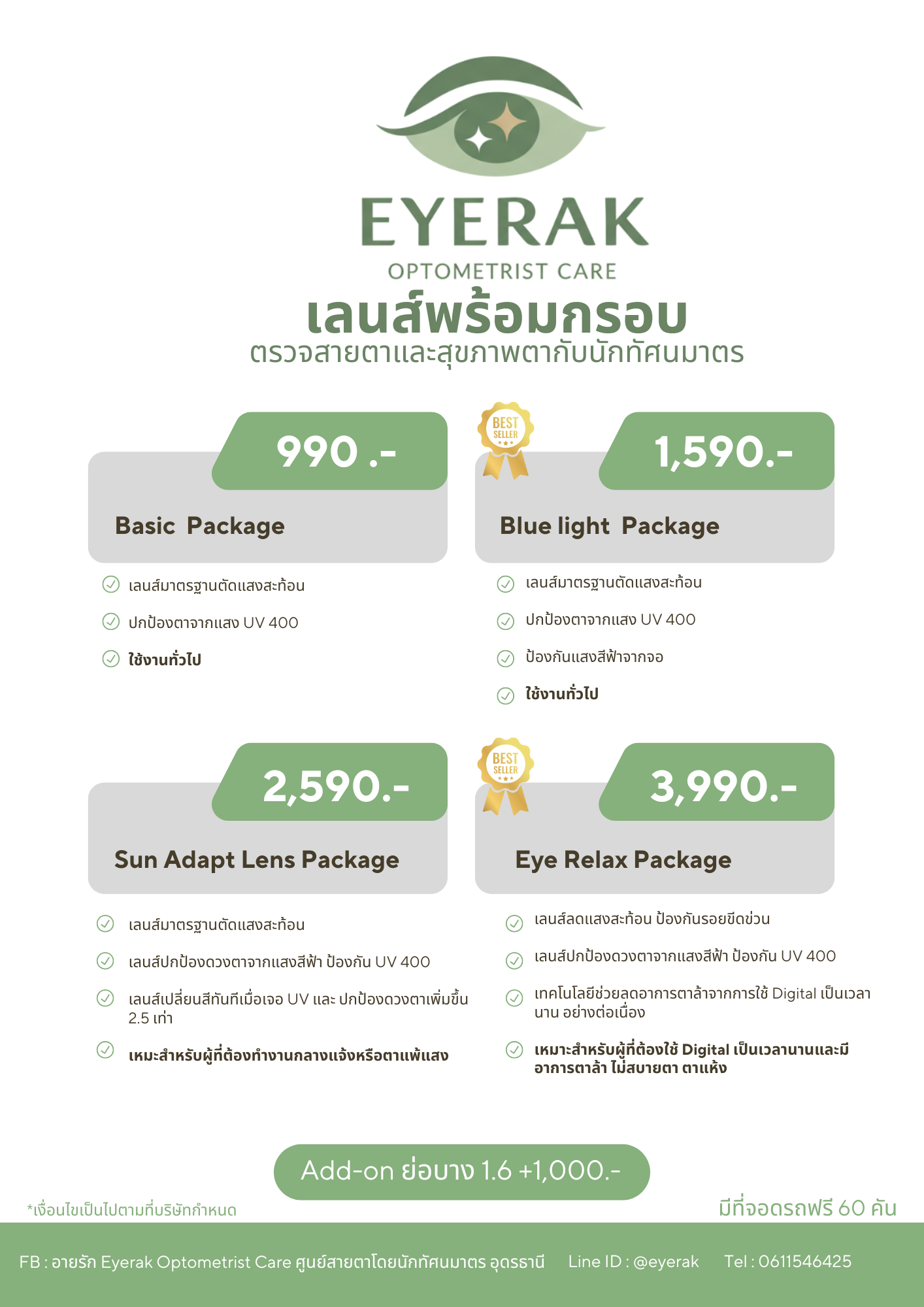 ฟรี ค่าตรวจวัดสายตา (มูลค่า 500 บาท)